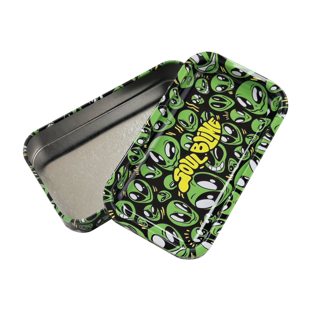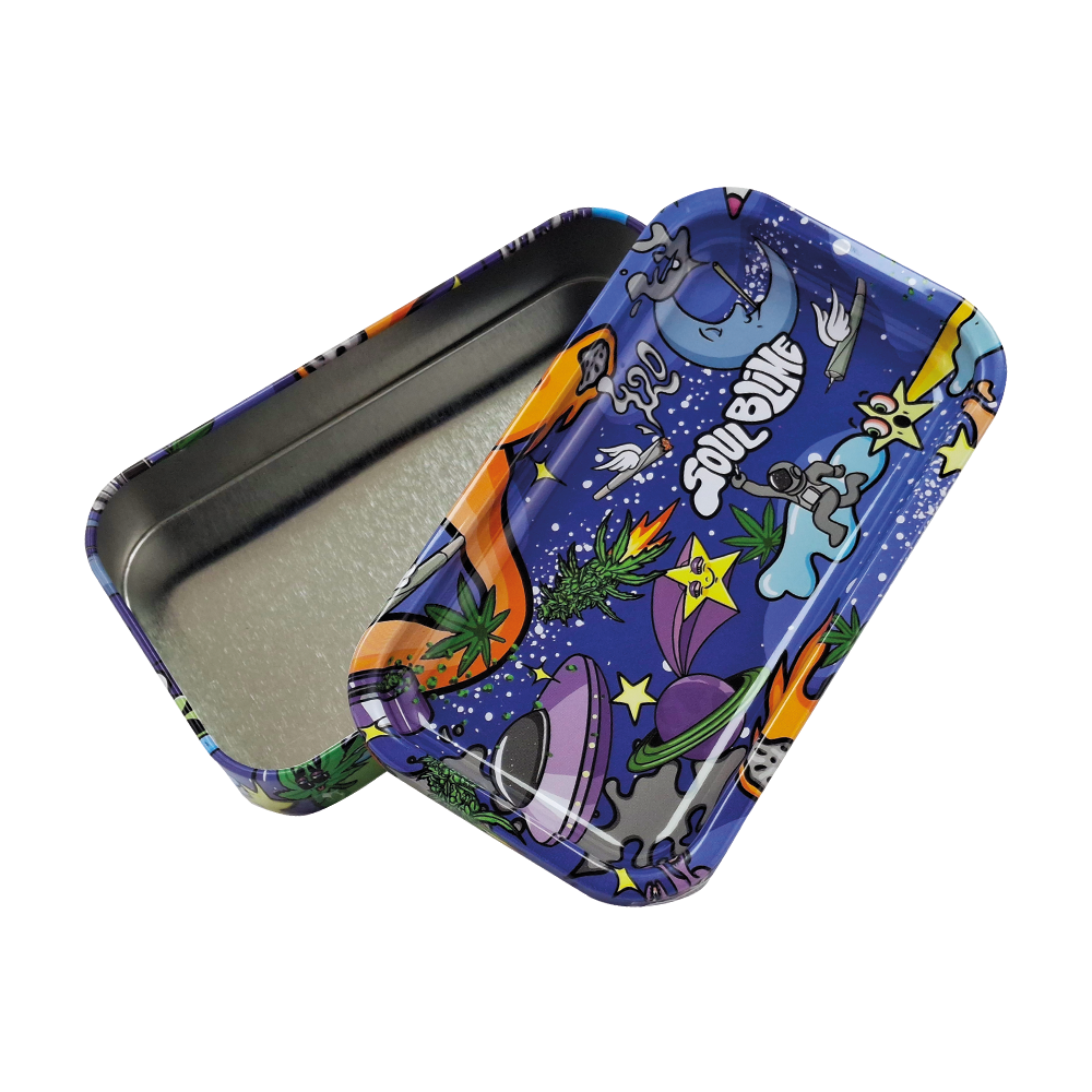 El contenedor metálico Soulblime de 12 x 7 cm es la solución ideal para llevar todo tu kit de rolado. Su tapa se convierte en una práctica bandeja, perfecta para rolar con facilidad en cualquier lugar.
