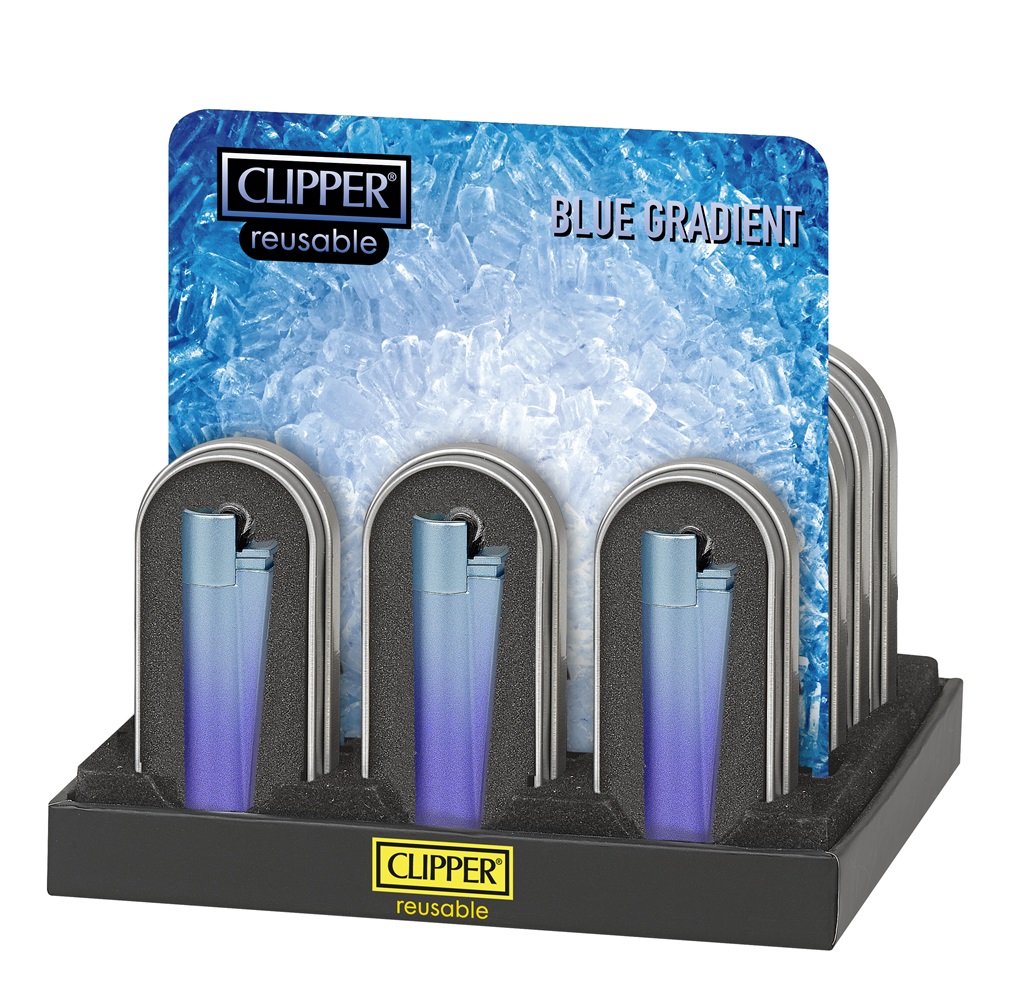 Encendedores Clipper – Metal Blue Gradient – 12 unidades