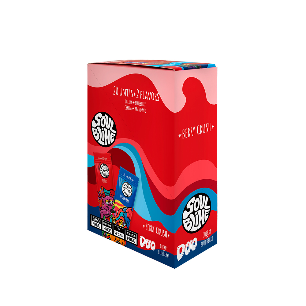 Hemp Wraps Soulblime Berry Crush Display – Blueberry & Cherry – 20 Sachets