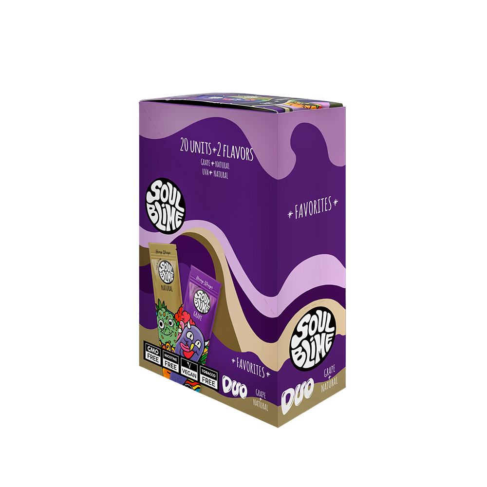 El nuevo display de Hemp Wraps Soulblime Favorites reúne dos de los sabores más clásicos de la marca, ideales para consumidores que prefieren perfiles tradicionales con un toque frutal.
