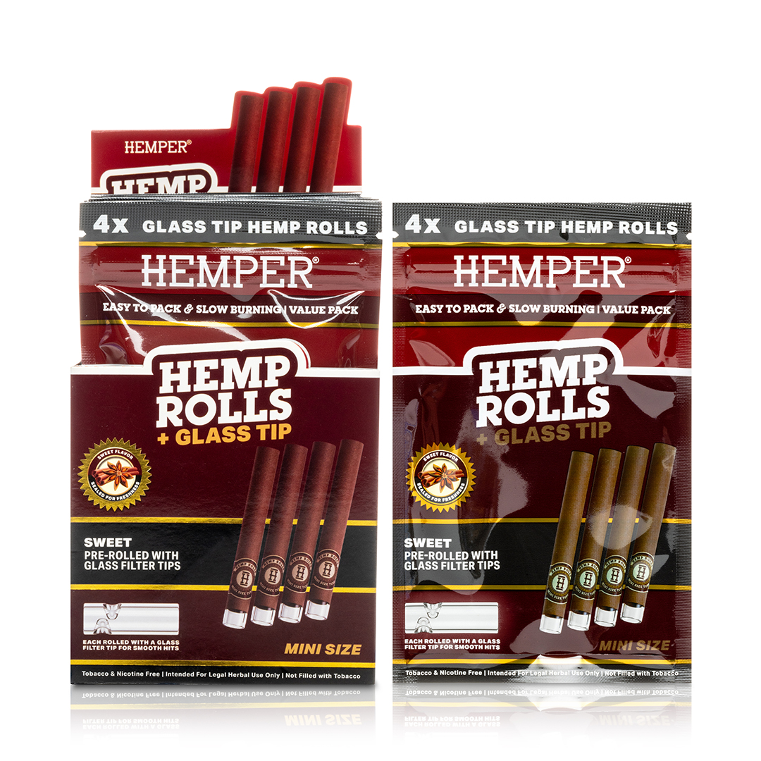 Hemper – Display 12 unidades – Mini rolls prerolados con boquilla de vidrio (4 unidades) – Dulce