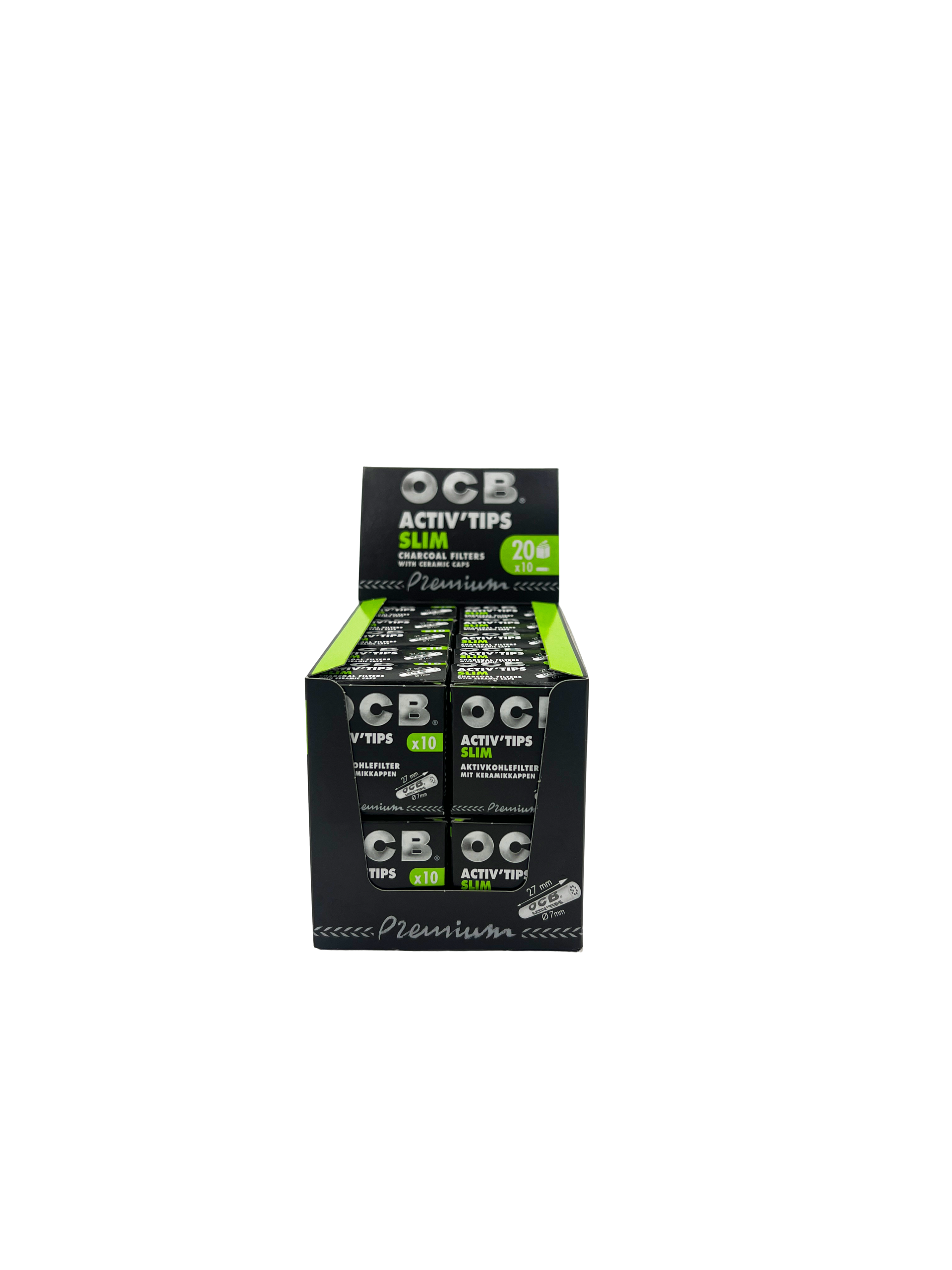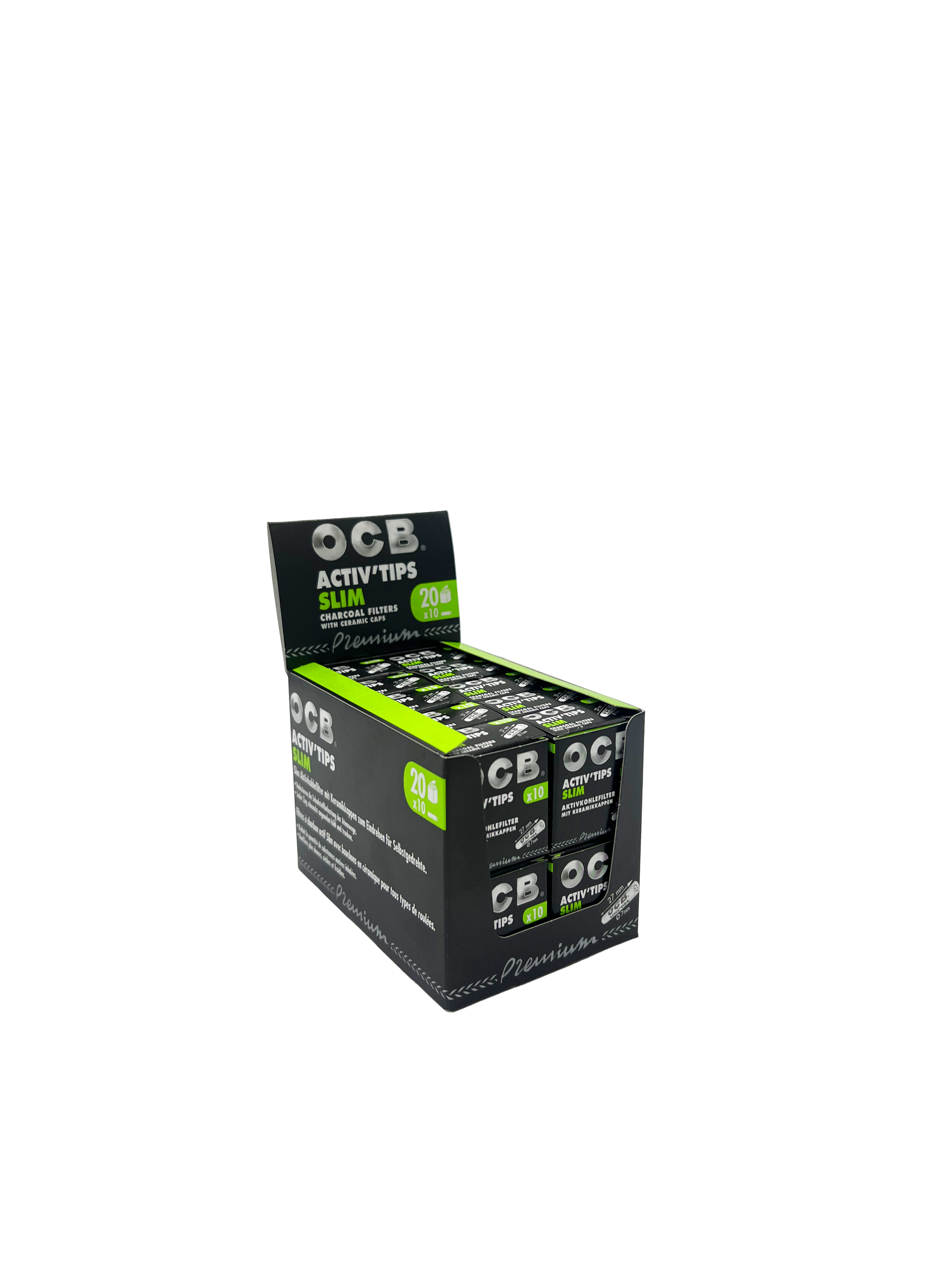 Los OCB Activ’Tips Slim son filtros de carbón activado en formato slim, ideales para clientes que buscan una experiencia más suave y premium al fumar.