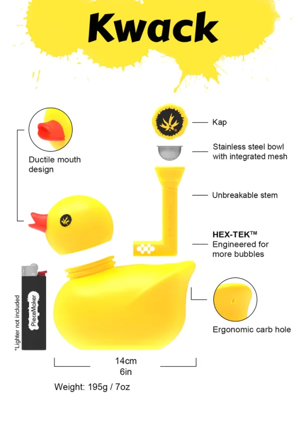 Famoso y hermoso bong con forma de patito de hule. PieceMaker Gear alcanza el nivel de clásico gracias a este producto, perfecto para quienes buscan bongs discretos que a la vez también son vistosos.