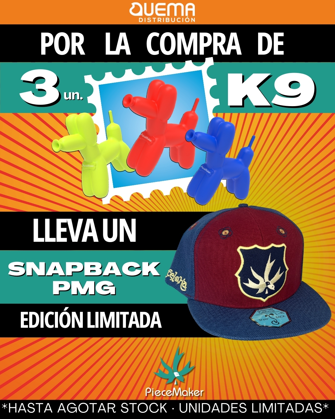 Por la compra de 3 unidades K9 de PMG, el cliente recibe 1 gorra PMG edición limitada sin costo. Promoción orientada a mejorar rotación y aumentar ticket promedio. Unidades limitadas · Hasta agotar stock.